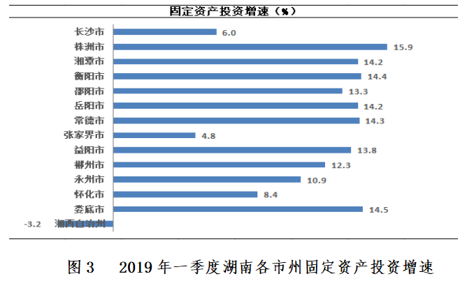 1、增速最快与最慢。株洲市、娄底市和衡阳市固定资产投资分别增长15.9%、14.5%、14.4%,增速位列全省前三位。湘西自治州固定资产投资增速出现负增长,-3.2%增速为全省最慢。怀化市、长沙市和张家界市增速较低,分别增长8.4%、6.0%和4.8%。全省共有10个市州的投资增速高于全省平均水平。