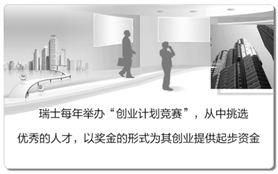 在瑞士,有三分之二的青年人在中学毕业后进入职业培训学校。如今,职业培训学校的学生也正成为瑞士民众创业的一支重要力量,很多人在学校读书时就开始学习如何组建一家企业。瑞士青年企业组织专门为这些学生创业提供指导和帮助。瑞士每年还举办“创业计划竞赛”,从中挑选优秀的人才,以奖金的形式为其创业提供起步资金。十几年来,在“创业计划竞赛”中获奖的青年人不少都已经成为瑞士成功的企业家。