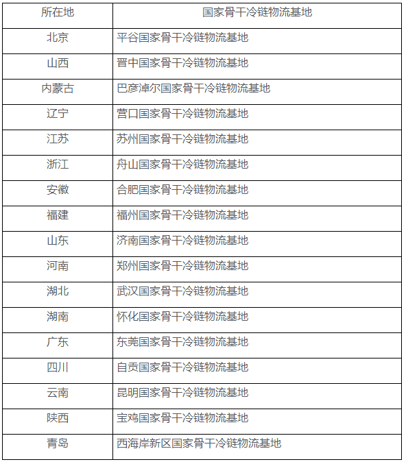 国家发展改革委发布2020年国家骨干冷链物流基地建设名单