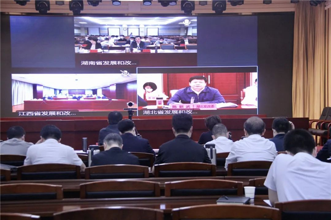 会上,三省发改委主任作了交流发言。湖北省发改委党组成员、副主任谢高波代表推进长江中游三省协同发展联合会办公室介绍了三省协同发展工作推进情况。武汉市发改委党组书记、主任孟武康介绍三省省会城市合作推进情况。湖南省发改委党组成员、长株潭一体化发展事务中心党委书记、主任吴小月,江西省发改委党组成员、副主任邱啟旻参加会议。
