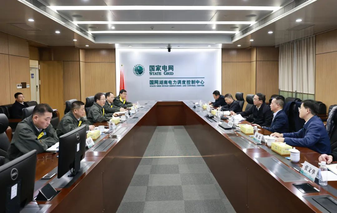 2月6日下午,省发改委党组书记、主任黄东红,省能源局局长汤吉鸿到国网湖南省电力有限公司调研部署电力保供工作。黄东红主任听取国网湖南电力调控中心关于电网运行情况的汇报,就当前电网防冻融冰工作和电力供应情况进行了详细交流。