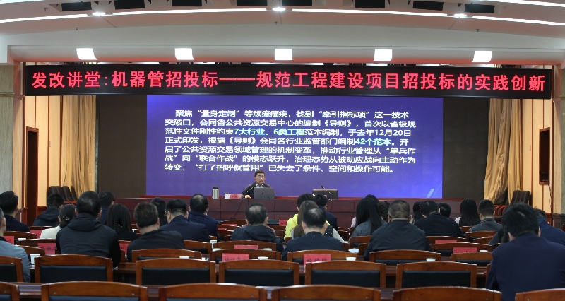 10月24日,省发展改革委举办第十四期发改讲堂,法规处处长尹枝茂以《机器管招投标——规范工程建设项目招投标的创新实践》为题授课,委机关及委属单位干部职工在主会场参加学习,各市州、县市区发展改革部门干部职工通过视频系统同步学习。