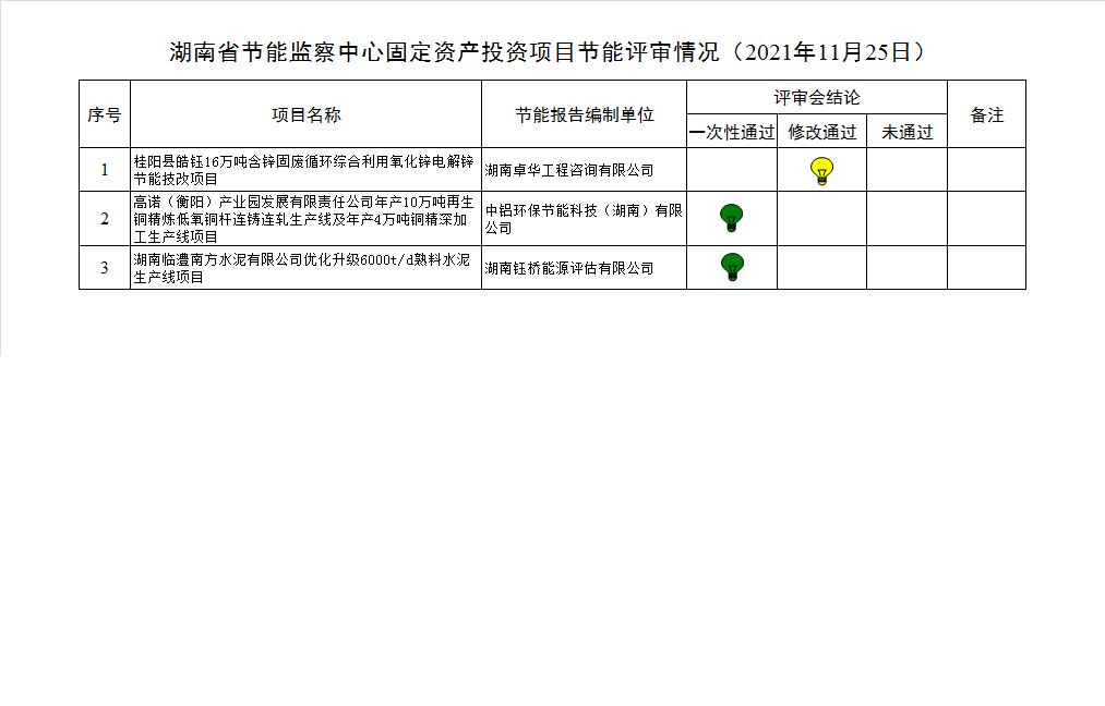 湖南省节能监察中心固定资产投资项目节能评审情况(2021年11月25日)