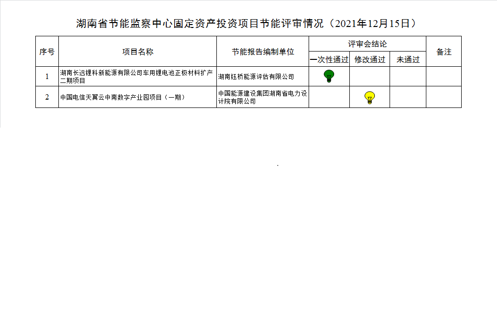 湖南省节能监察中心固定资产投资项目节能评审情况(2021年12月15日)