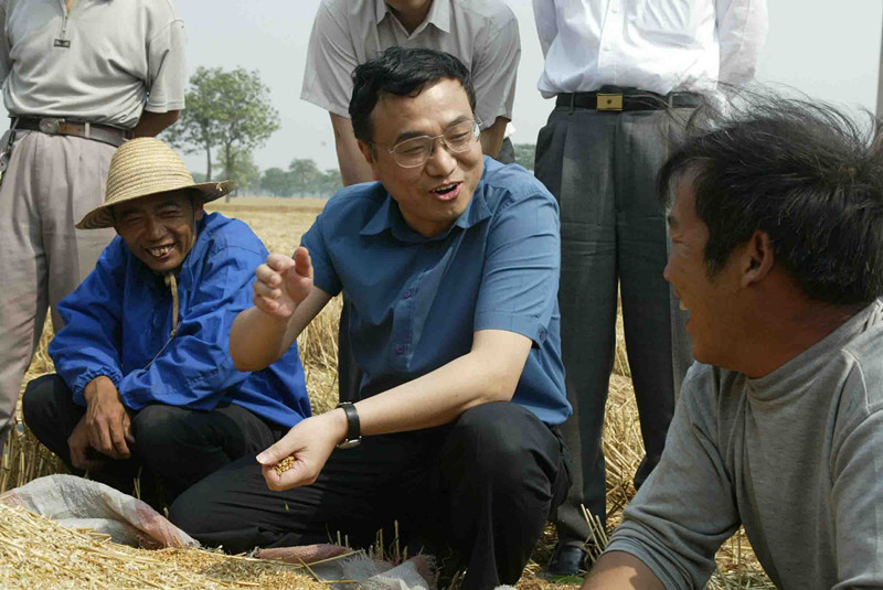 2003年8月,李克强任河南省委书记时与河南新乡农民聊天。