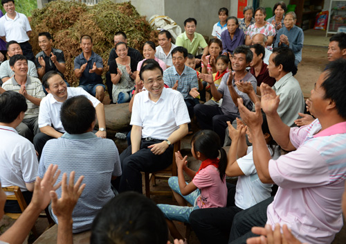 2013年7月9日,南宁坛良村村口大榕树下,李克强总理和村民们在一起。