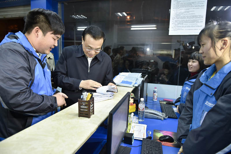 2014年11月19日,李克强总理在浙江义乌一家快递网点看望快递工人。