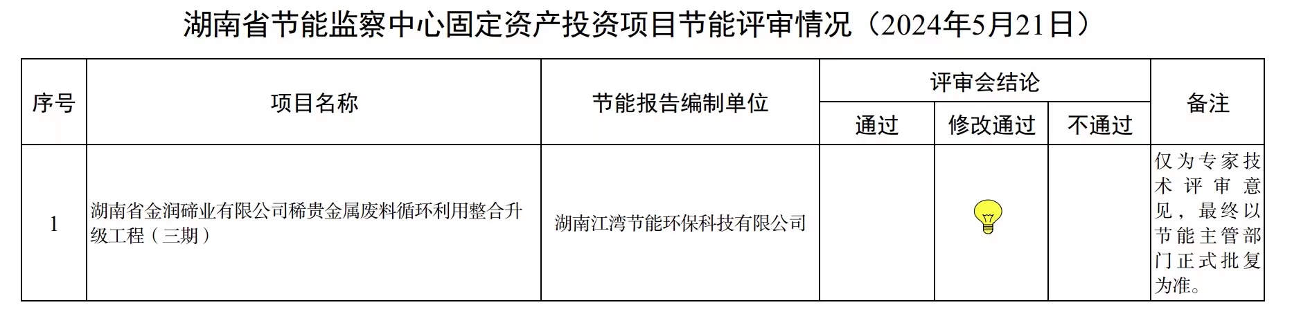 湖南省节能监察中心固定资产投资项目节能评审情况(2024年5月21日)
